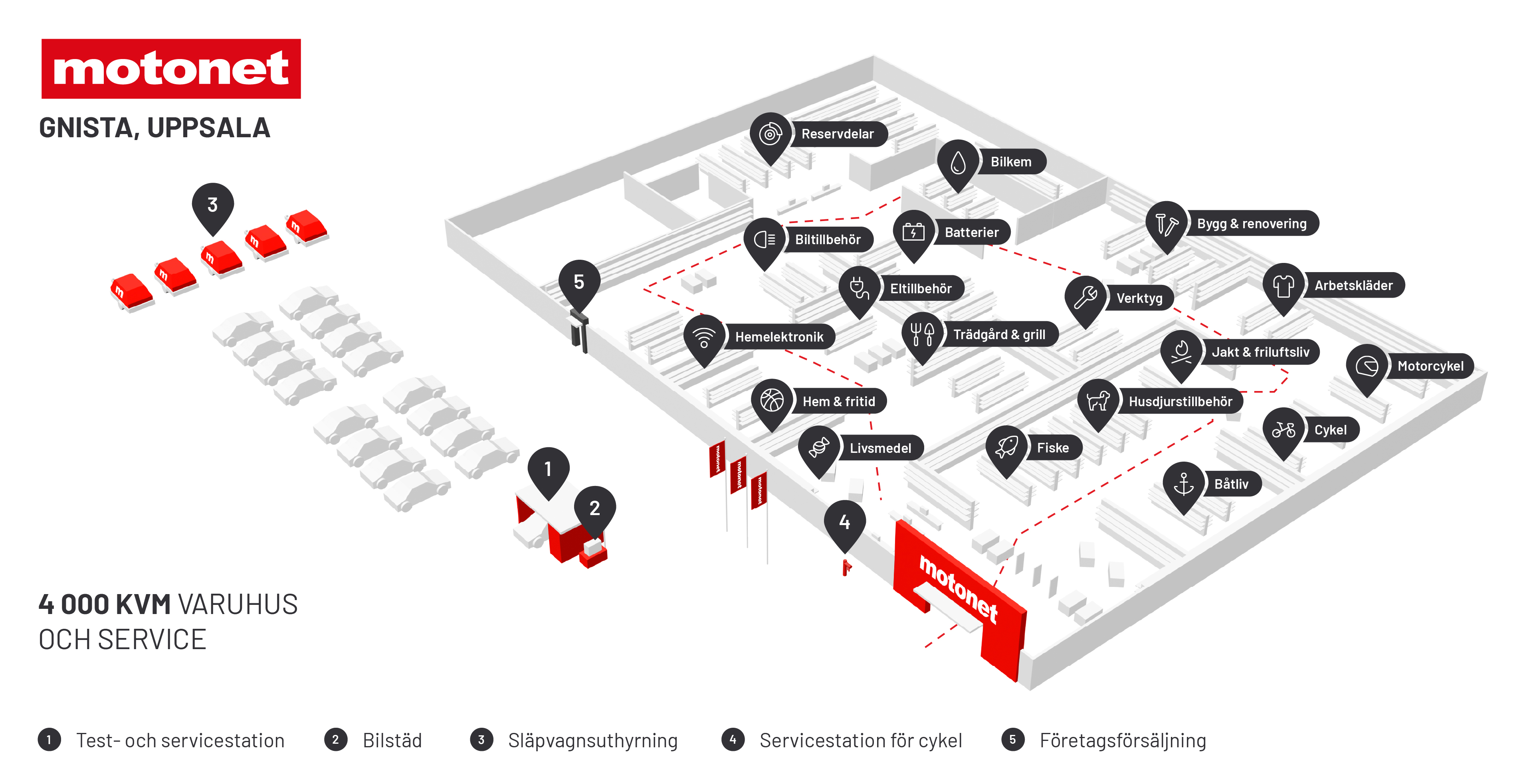 Varuhuset, som ska sträcka sig över 4 000 kvm, kommer att erbjuda Motonets fulla sortiment på över 65 000 olika produkter inom 13 kategorier, samt olika servicetjänster som kompletterar utbudet.